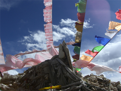 ルンタが風に飛ばされ空へとばら撒かれていた。