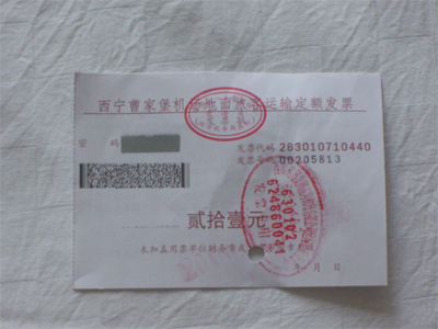 ↑玉樹→西寧の寝台バスチケット(176元)。