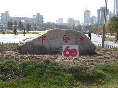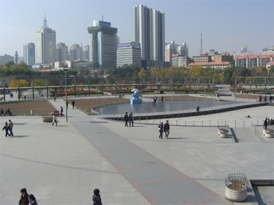 ↑街の中央ロータリー(左)と、そのすぐ隣にある広場。