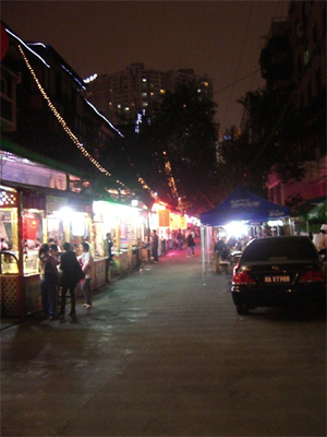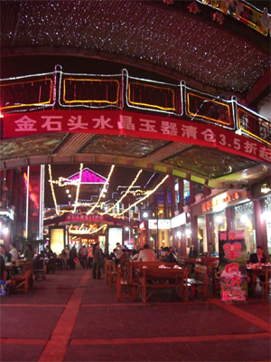 土産物屋と四川料理屋が軒を連ね、夜だというのに人で賑わっていた。
