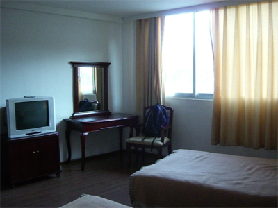 ↑一部屋一泊50元、テレビ、熱湯サービス、