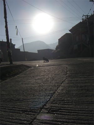 交差点中央の犬と太陽の構図が妙に印象的だった。