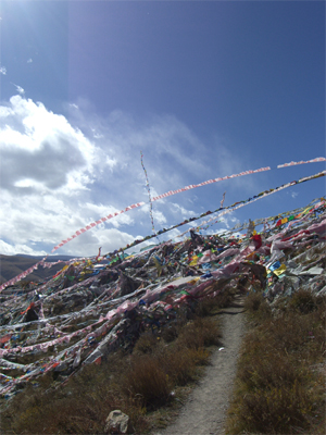 ルンタが風に飛ばされ空へとばら撒かれていた。