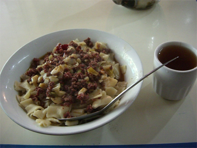 担担面(右:6元)。有名な四川料理。辛い。でも美味しい。