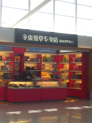 ↑西寧空港にもあった冬虫夏草の店。