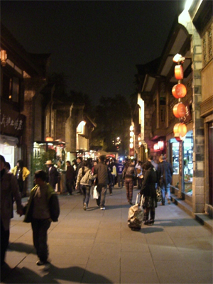 土産物屋と四川料理屋が軒を連ね、夜だというのに人で賑わっていた。