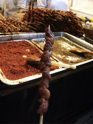 羊肉串(左:5元)は自分で唐辛子と山椒を
