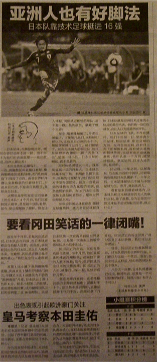 一番上の見出しは「アジア人にもサッカーテクがある!」みたいな意味です。