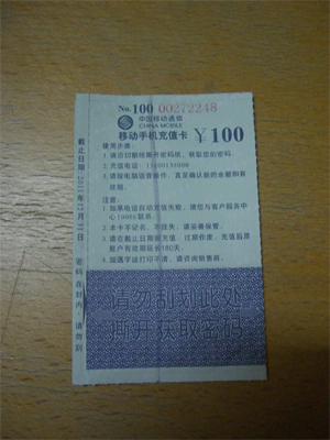 今回は自分でチャージする方法(中国移動通信版)を紹介します。